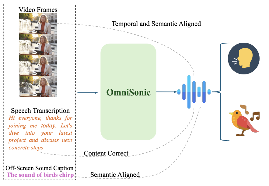 OmniSonic: Towards Universal and Holistic Audio Generation from Video and Text